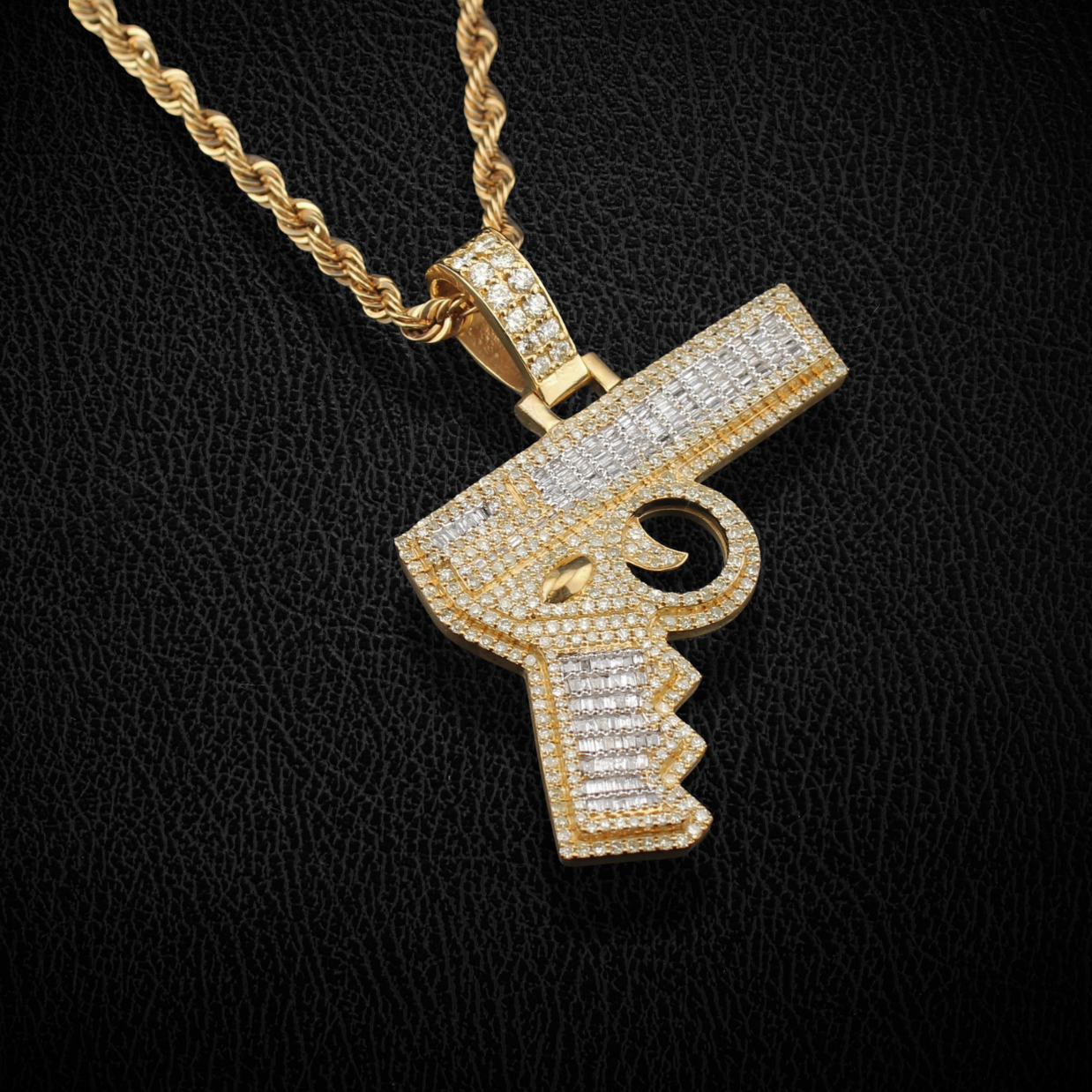 10K Diamond Pistol Pendant & Chain