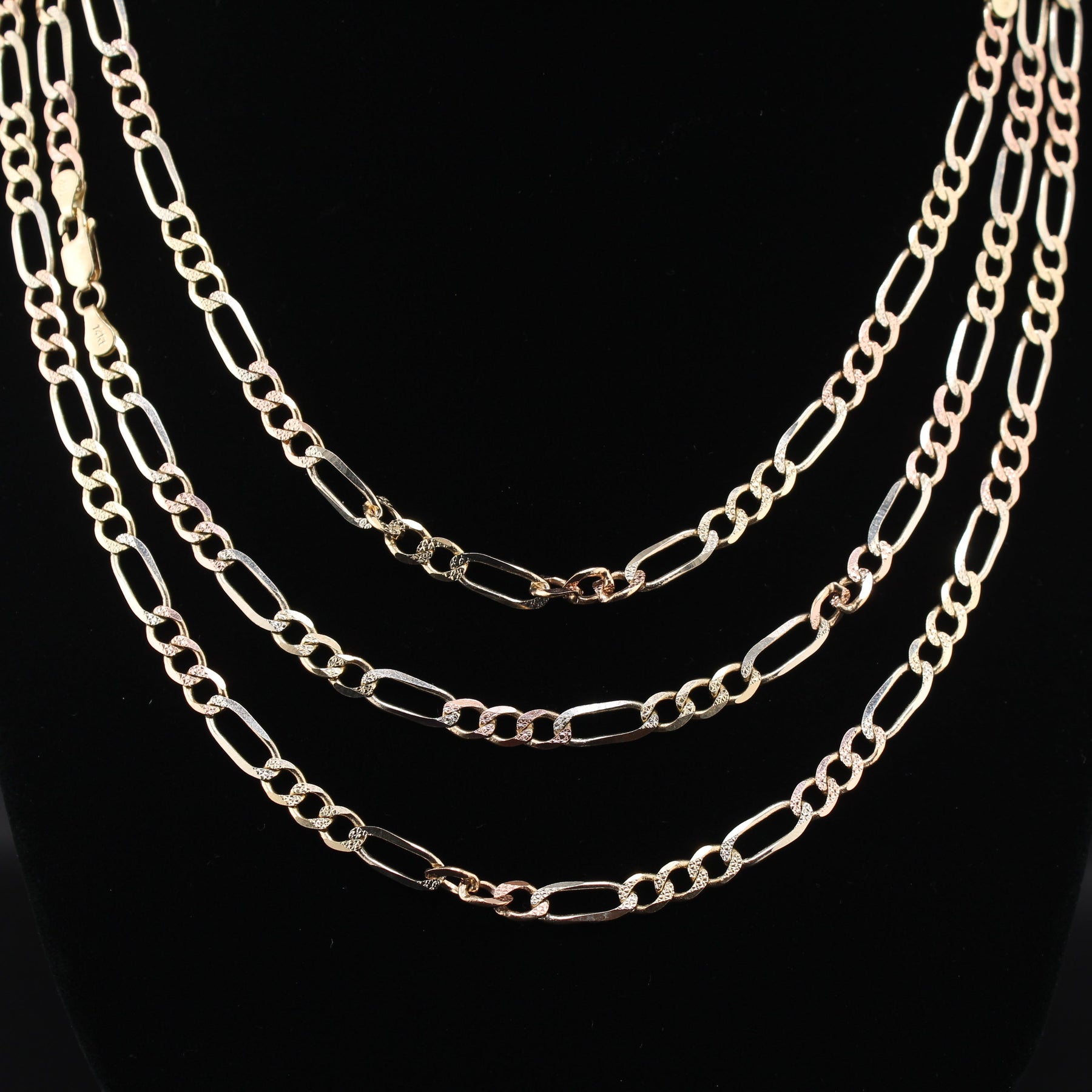 14K Solid Gold TriColor Figaro