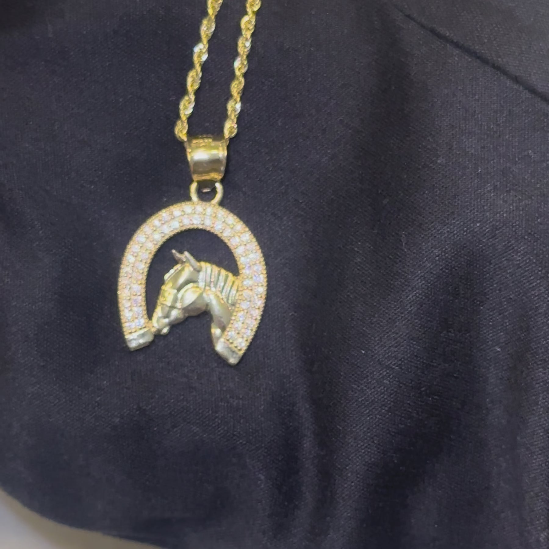 10K Horseshoe Charm & 1.5mm Rope Chain