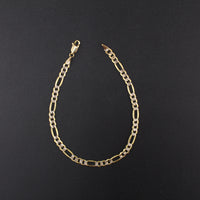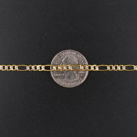 Pulsera de oro de 10K auténtico, diseño Figaro de corte diamante, 4 mm