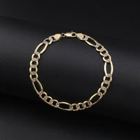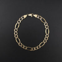 Pulsera de oro de 10K auténtico, diseño Figaro de 8mm con corte de diamante