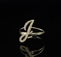 El anillo con la letra J de diamante de oro de 10K es un audaz anillo de oro de 10K engastado con diamantes de 0,43 CTW. 100% oro de 10K real — sellado, autenticado y disponible con envío gratuito en EE. UU.